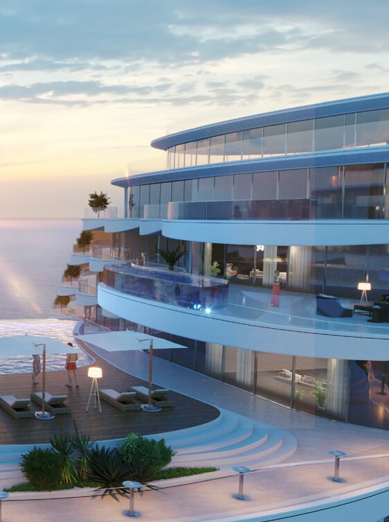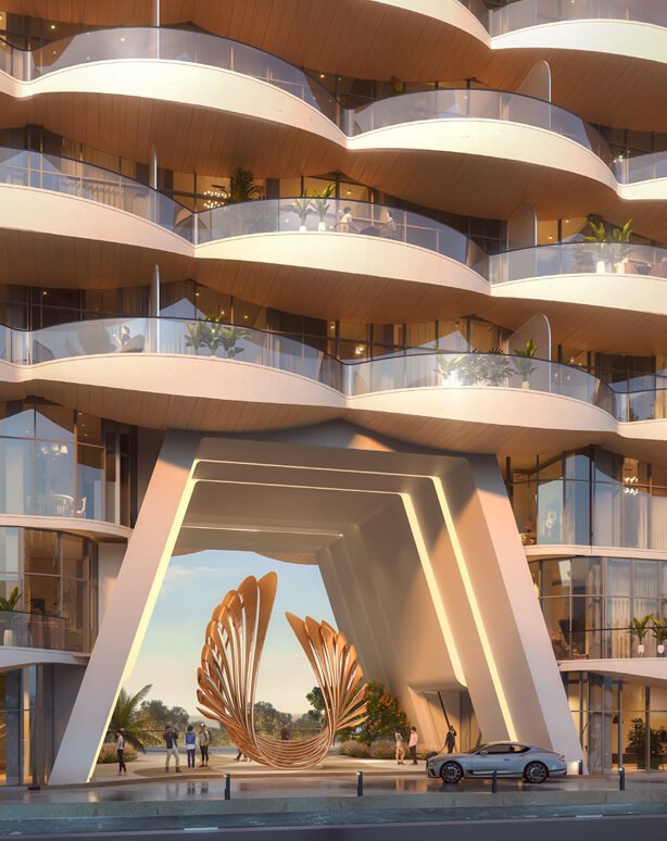 Aqua Arc is a luxury residential development by BNW Developments on Al Marjan Island, Ras Al Khaimah. Featuring 1‑ to 3‑bedroom apartments, penthouses, sky villas, and townhouses, each unit is designed with modern finishes and floor-to-ceiling windows. Inspired by natural forms like Jebel Jais and flowing valleys, the architecture incorporates cascading water features and a curving façade. Residents enjoy world-class amenities, including a gym, wellness areas, landscaped gardens, social lounges, and recreational spaces. Aqua Arc combines innovative design with a vibrant community lifestyle, offering a sophisticated living experience and an attractive investment opportunity in Ras Al Khaimah. Handover expected Q2 2027